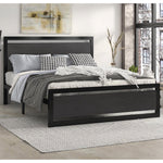 - Queen Black Metal Platform Bed Frame with Wood Panel Headboard and Footboard