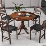- Round 40-inch Solid Wood Farmhouse Kitchen Dining Table in Medium Brown Finish