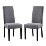 Easily upgrade your kitchen with this Set of 2 Modern Grey Fabric Upholstered Dining Chair with Black Wood Legs. Featuring upholstery, the chairs are available in a range of colors to complement your decor. The clean, armless design elevates any space with timeless panache. The chair is covered with fabric material and padding with wooden legs making it more solid with a modern style.