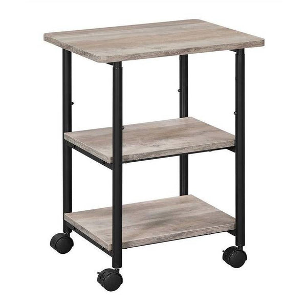 Modern Industrial Black Metal Grey Wood Printer Stand Shelf Cart